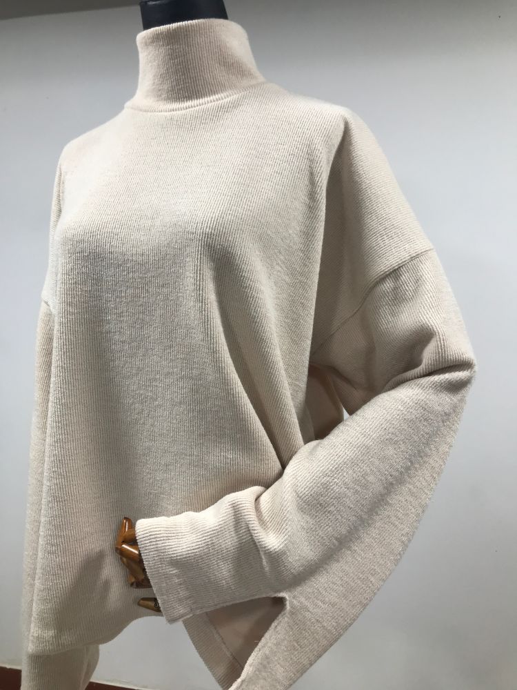 القميص بياقة عالية من قماش كوت مع أكمام بشقّ جانبي