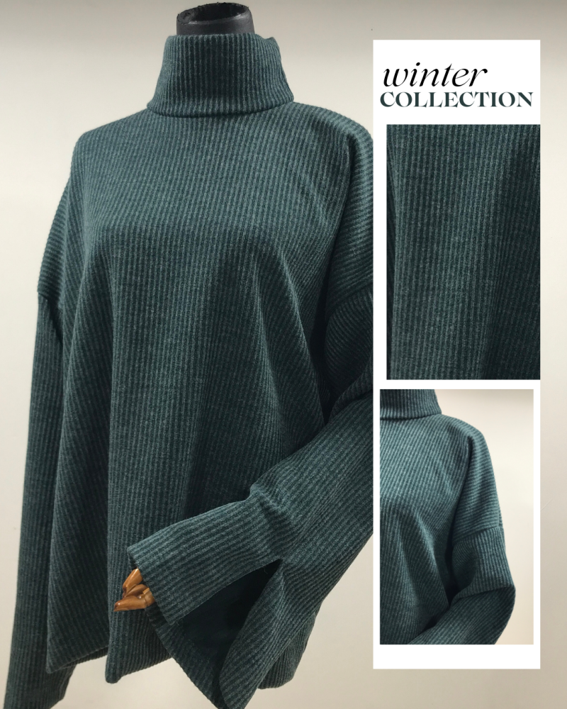 الياقة العالية تضيف لمسة أنيقة وتمنح حماية إضافية، و أكمام بشقّ جانبي